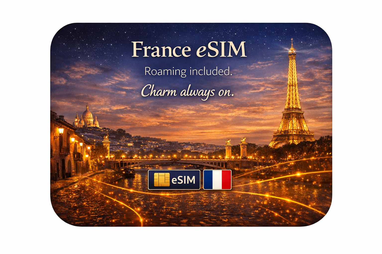 Get highest speeds in France with this eSIM plan. Start your eSIM instantly upon arrival in France and enjoy high-speed data with no hidden roaming fees.