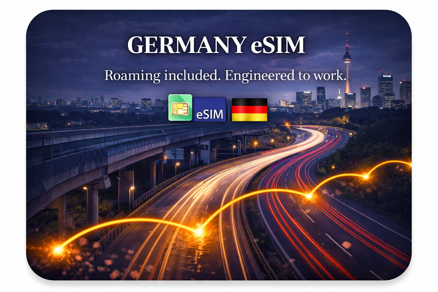 Get highest speeds in Germany with this eSIM plan. Start your eSIM instantly upon arrival in Germany and enjoy high-speed data with no hidden roaming fees.