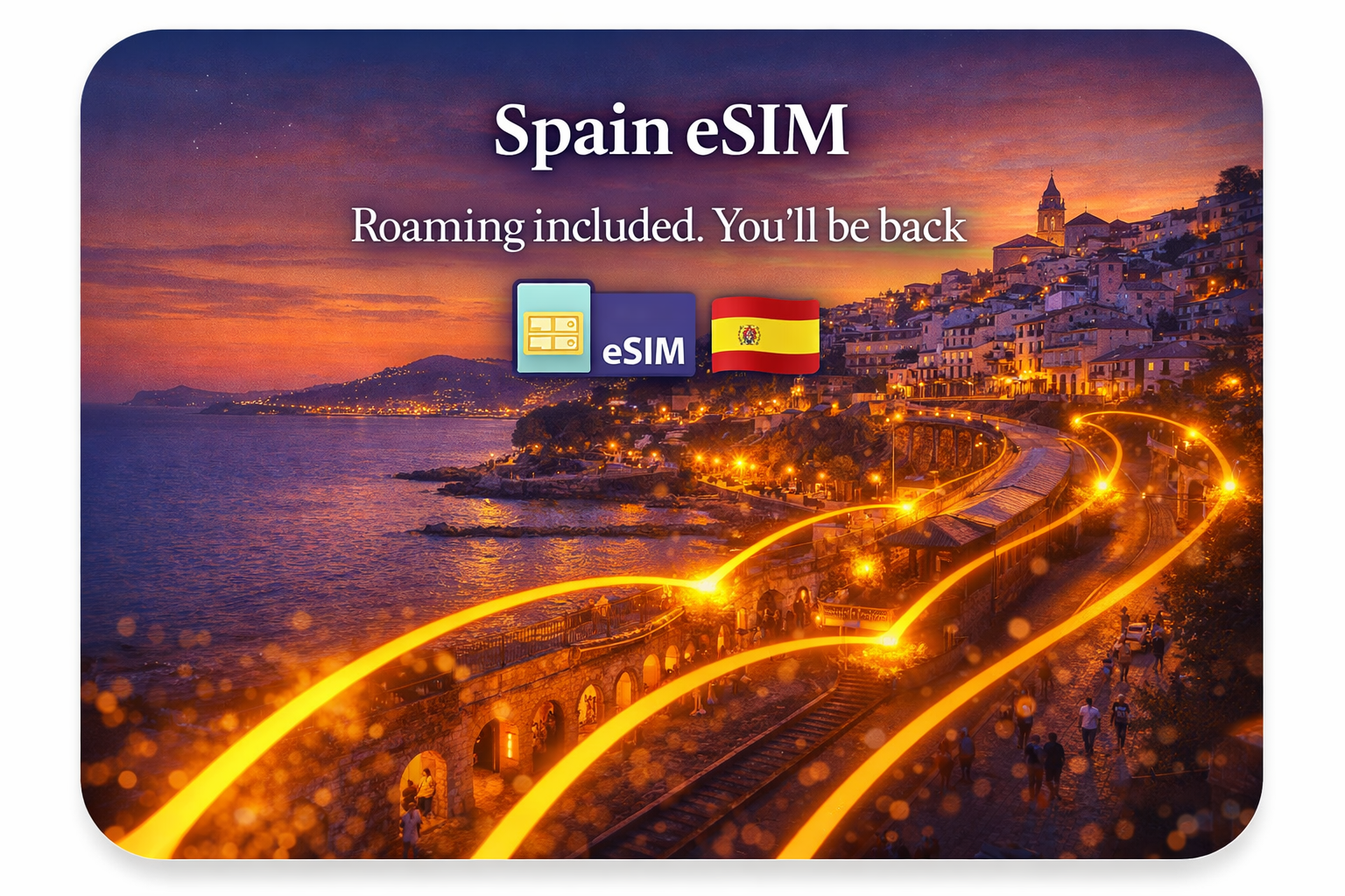 Get highest speeds in Spain with this eSIM plan. Start your eSIM instantly upon arrival in Spain and enjoy high-speed data with no hidden roaming fees.