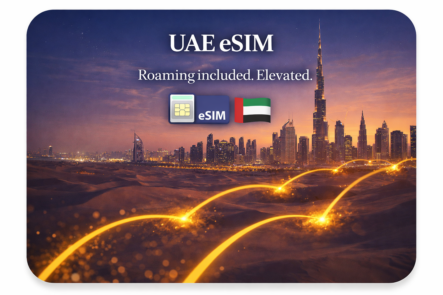 Get highest speeds in United Arab Emirates with this eSIM plan. Start your eSIM instantly upon arrival in United Arab Emirates and enjoy high-speed data with no hidden roaming fees.